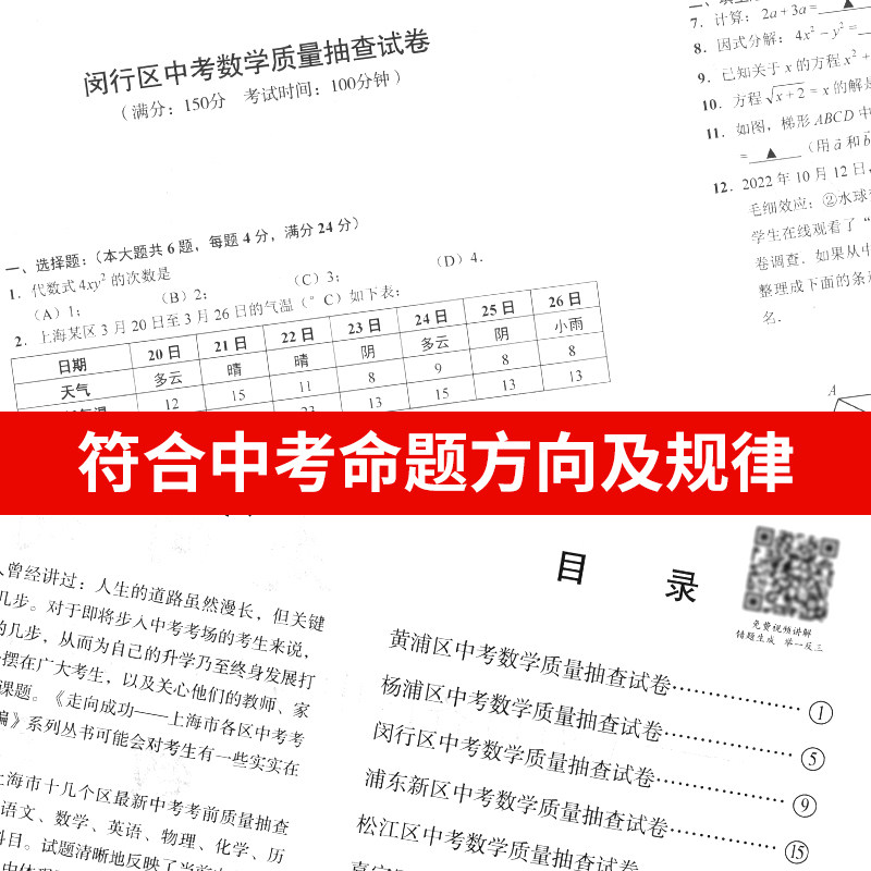 《2026走向成功·上海中考二模卷》是专为九年级学生精心编写的全科模拟训练资料,涵盖英语、数学、语文、物理、化学、历史、道德与法治七大学科。试卷紧扣上海中考最新考纲,题型贴近真题,难度适中,注重基础知识巩固与综合能力提升。每科均精选高频考点与必背题型,配有详细解析,帮助学生查漏补缺、强化训练。通过系统模拟测试,学生可熟悉考试节奏,提升应试技巧,全面备战中考。本系列试卷是初三学子冲刺理想高中的高效复习利器,助力考生在2026年中考中稳扎稳打,走向成功。