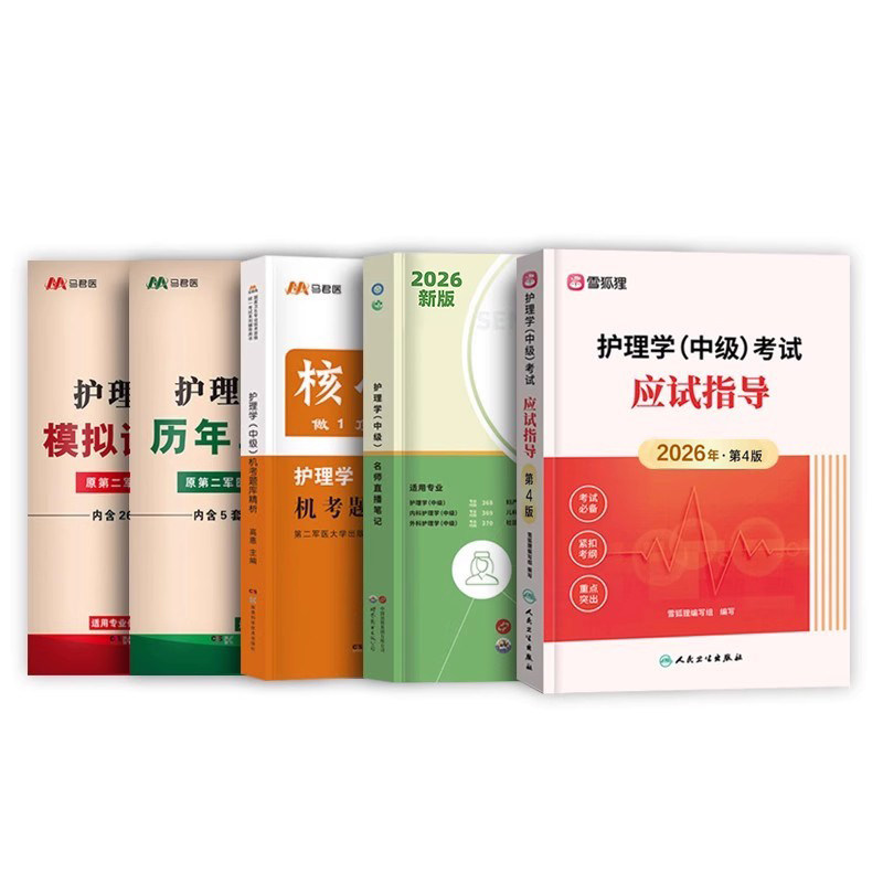 【赠精讲班】主管护师护理学中级2026年备考套装,全面助力高效通关!内含人卫版权威应试指导教材,紧扣最新考纲,系统梳理核心考点;配套历年真题与模拟试卷,强化实战训练;军医版《轻松过》《随身记》便携高效,碎片时间轻松掌握重点;雪狐狸机考题库智能刷题,精准查漏补缺;更有超值赠送的精讲网课视频,名师逐章讲解,深入浅出。多维度资源融合,科学备考路径,助您一次通过主管护师考试,稳拿中级职称!适合2026年考生提前规划,早准备、早过关。