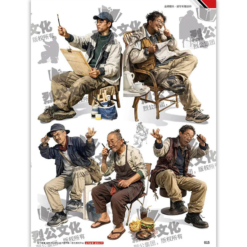 天猫金榜题名速写考题创作 2026烈公文化冼召君站坐蹲动态组合人物写生对画素材课件考题训练美术高考校考广东美院教程教材书籍