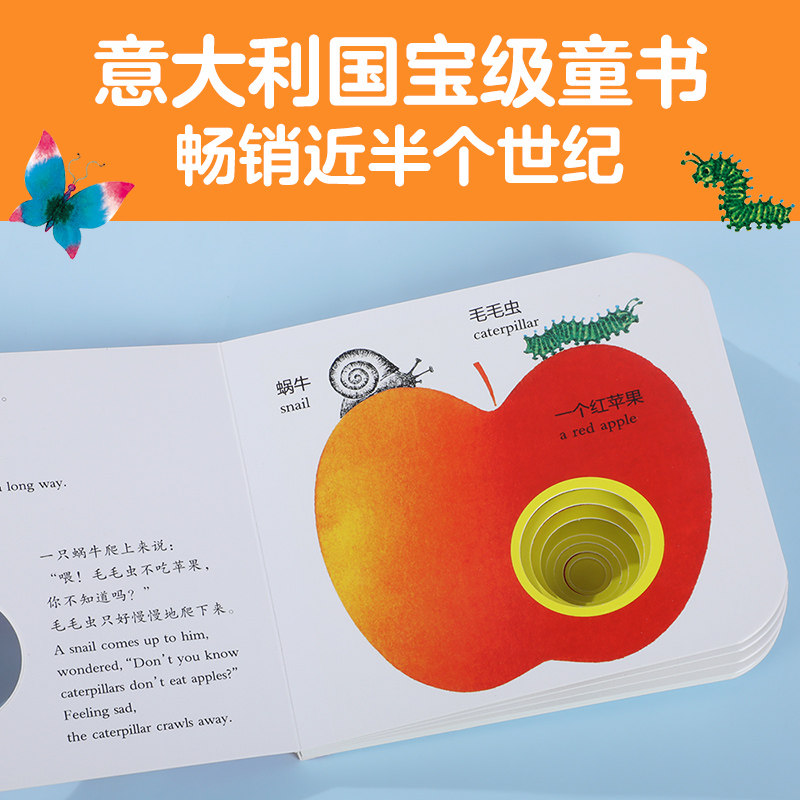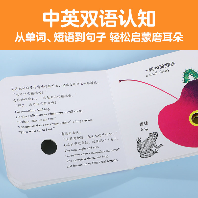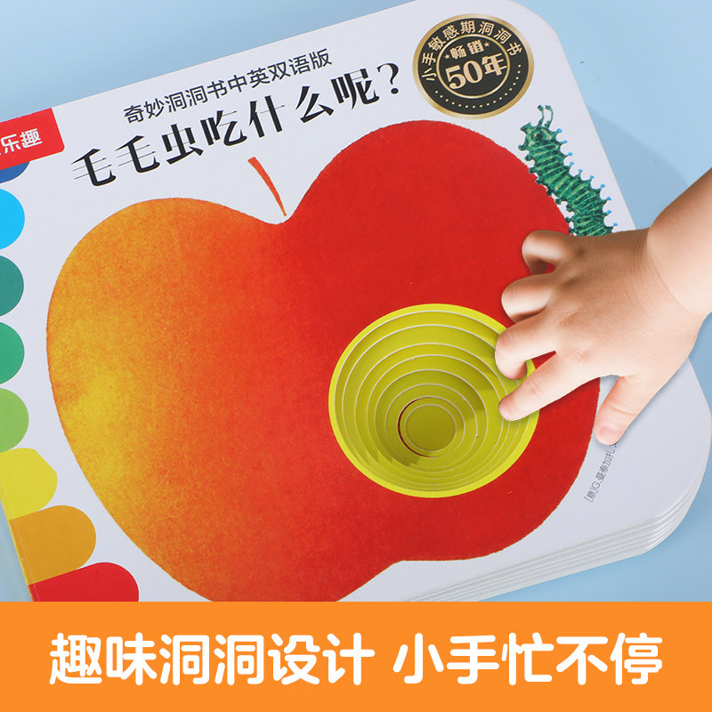 天猫乐乐趣 奇妙洞洞书蒙氏婴儿早教绘本0-3岁中英双语版系列宝宝毛毛虫吃什么呢感官启蒙认知推拉儿童触摸触感机关益智玩具幼儿籍1岁2