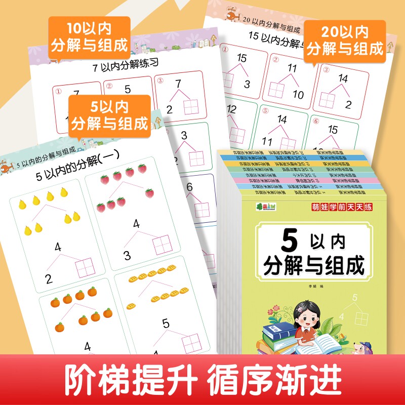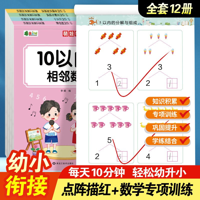 淘宝幼儿园1020以内加减法分解与组成数学训练全横式汉字描红笔顺描红拼音描红本数字描红本相邻数比大小幼小衔接启蒙训练