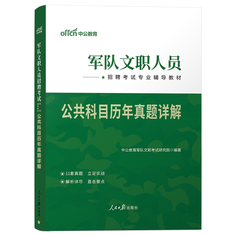 《中公2027年军队文职人员招聘考试专用教材·公共科目+专业科目历年真题及标准预测卷》紧扣最新考试大纲,涵盖会计、护理、管理学、数学、临床医学等热门专业科目。精选近五年真题,搭配高质量模拟题,全面还原考试题型与难度。每套试卷均附详细解析,重点突出考点梳理与答题技巧,帮助考生高效掌握命题规律。图书内容结构清晰,题量充足,适合系统复习与考前冲刺。无论是公共基础知识还是专业科目强化训练,都能满足备考需求,是部队文职考生提升应试能力、顺利通过笔试的权威复习资料。