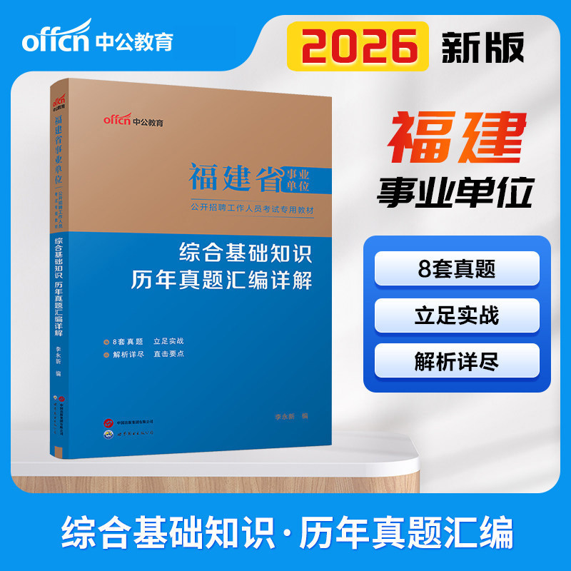 中公教育2026年福建省事业单位公开招聘考试《综合基础知识》历年真题卷及全真模拟试卷,专为报考福州、厦门、泉州、莆田等地A类岗位考生精心编写。本书精选近年福建省属及各地市真题,全面覆盖政治、法律、经济、管理、公文、科技人文等公基核心考点,并配套高质量全真模拟卷,题型、难度与真实考试高度契合。每套试卷均附详细解析,帮助考生掌握答题技巧,提升应试能力。作为权威备考资料,本书系统梳理知识体系,强化刷题训练,是福建事业编考生高效复习、冲刺高分的理想选择。