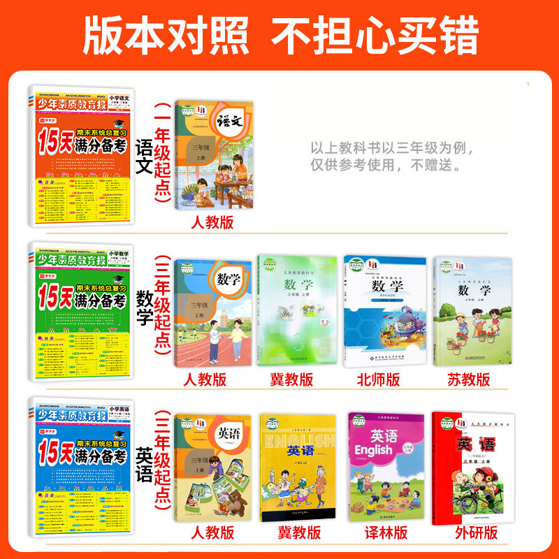 天猫2025新版下册15天满分备考少年素质教育报一二年级四五六年级语文数学英语期中期末总复习新全优小学人教版北师版考前冲刺高频考题