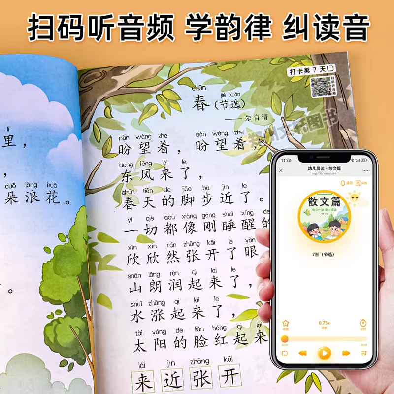 天猫幼儿晨读美文幼儿园阅读与识字绘本诗歌散文幼小衔接阅读读物学前大班儿童课外书儿歌早教大字带拼音的注音版朗诵读一年级每日晨读