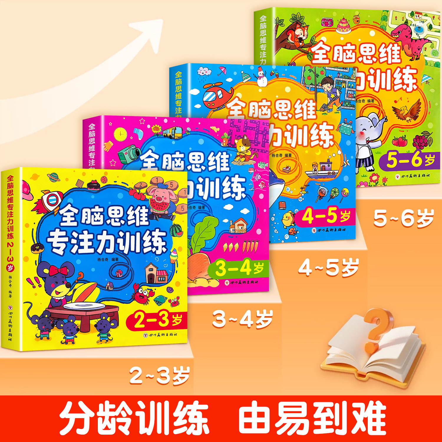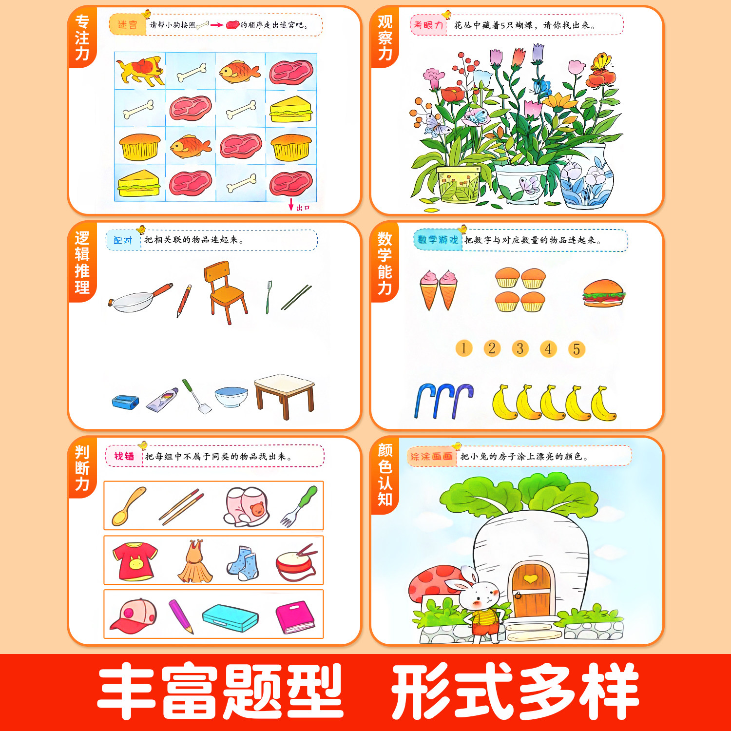 天猫儿童专注力思维训练书1600题2-3-6岁幼儿数学逻辑思维益智全脑开发绘本游戏书幼儿园中班宝宝迷宫找不同认知早教启蒙书籍4岁教材