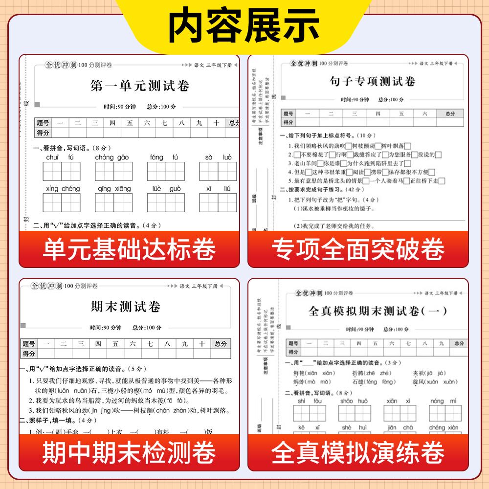 2026新版 全优冲刺100分测评卷三年级一年级二年级四五六年级上册下册全套人教版语文数学英语达标卷单元卷期中期末卷练同步教材