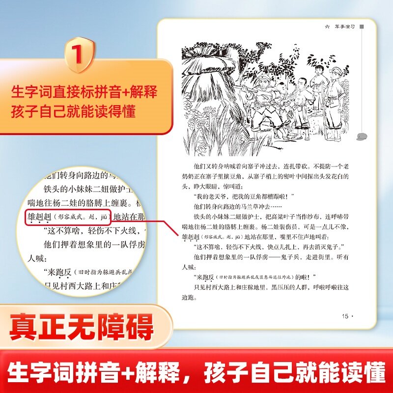 《小英雄雨来》是管桦创作的红色经典儿童文学作品,被教育部列为四年级下册“快乐读书吧”及六年级上册推荐阅读书目,适合8-12岁小学生阅读。本书讲述了抗日战争时期,少年雨来在晋察冀边区机智勇敢、不畏强敌,与敌人斗智斗勇的感人故事。作品语言生动,情节紧凑,人物形象鲜明,既展现了雨来的爱国情怀与勇敢品质,也传递了正义必胜的信念。作为正版原著完整版,当当网提供的该书内容完整,无删减,是孩子了解历史、培养责任感和爱国精神的重要课外读物,深受师生和家长推荐。
