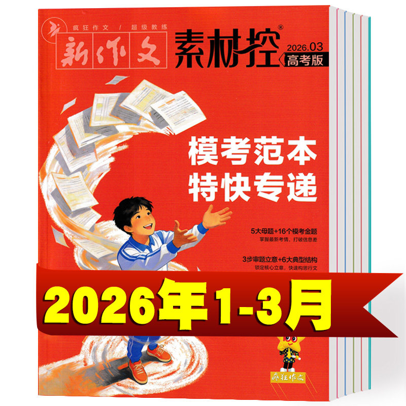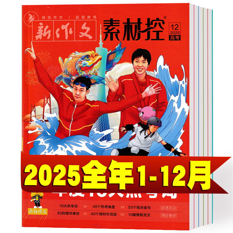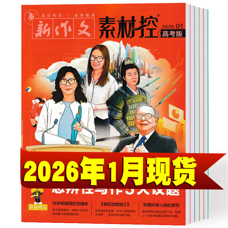《疯狂作文·素材控》2025年1–12月及2026年1–4月合辑,专为高中生冲刺高考语文作文打造。精选全年时事热点、经典人物事迹、社会焦点与哲理时文,涵盖科技突破、文化传承、青年担当等高频考点。每则素材均附精要点评与使用示例,助力快速立意、精准论证。搭配满分范文解析,打通从积累到写作的“最后一公里”。内容鲜活、分类清晰、直击命题趋势,是高三学子高效备考、提升思辨与表达能力的权威素材库,让作文言之有物、脱颖而出。