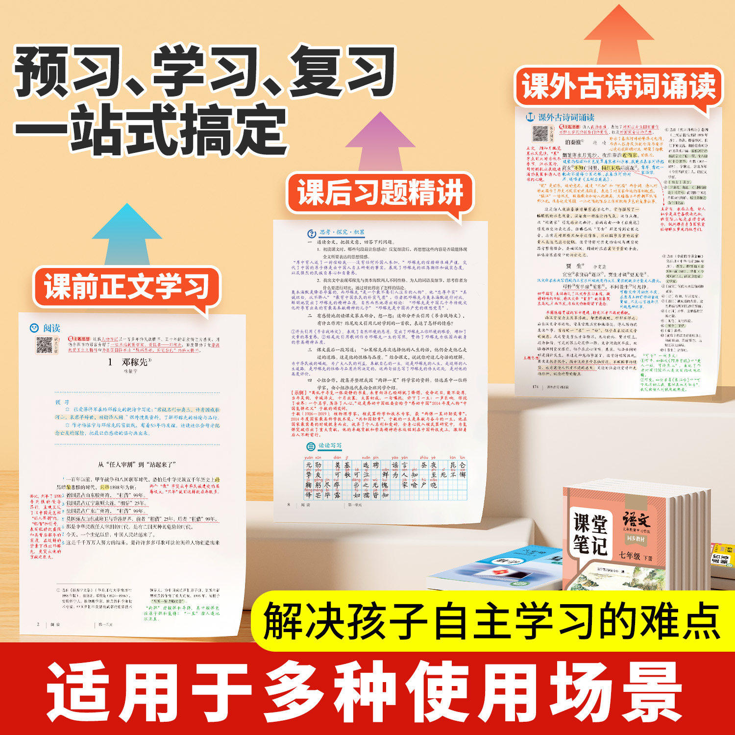 天猫2026新版课堂笔记七年级下册八年级九年级上册语文数学英语初一初二初三人教版初中全套同步课本新教材中学教材全解解读预复习笔记