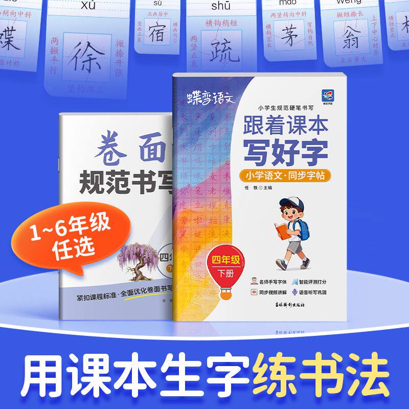 2026春季新版《蝶变图书·跟着课本写好字》小学语文同步字帖,涵盖一至六年级上下册,严格对标人教版语文教材,一课一练,同步巩固生字、词语。字帖精选课本重点字词,采用规范楷书范字,笔顺清晰,结构精准,助力学生夯实书写基础。特别设置硬笔控笔训练模块,从线条、转折到字形,循序渐进提升书写稳定性与美观度。内页排版科学,留白充足,便于反复临摹。配套田字格、拼音格设计,兼顾识字与书写,是小学生课内同步、课后练字的理想工具书,让写字更规范、更高效、更有趣。