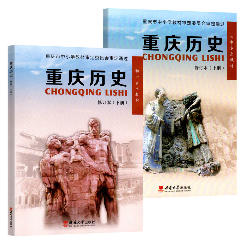 2026新版西师版《重庆历史》(上下册)全套共2册,是专为初中学生编写的乡土教材,由西南师范大学出版社权威出版,内容紧扣重庆地方历史发展脉络。上册主要讲述从远古巴渝文明到近代重庆开埠前的历史变迁,下册聚焦近现代重庆在抗战、工业建设及改革开放中的重要地位。教材图文并茂,语言通俗易懂,注重培养学生家国情怀与地方认同感。作为重庆市初中历史教学的配套读本,本书融合课标要求与地域特色,兼具知识性、教育性和可读性,是学生了解家乡历史、增强文化自信的重要学习资料。正版授权,印刷清晰,适合课堂教学与课外拓展使用。
