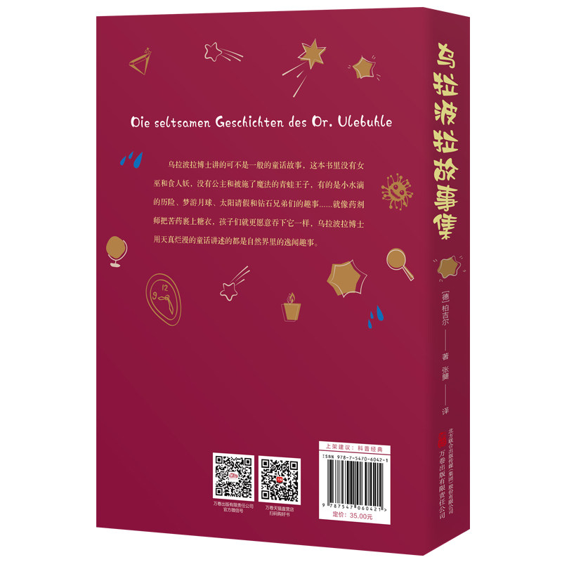 《乌拉波拉故事集》是德国著名科普作家柏吉尔的经典儿童科学童话作品,正版由当当网发售,专为6-12岁小学生精心打造。本书将科学知识与生动童话巧妙融合,通过乌拉波拉这位智慧小精灵的奇幻冒险,带领孩子们探索自然奥秘,了解物理、天文、生物等基础科学原理。语言优美,情节趣味十足,兼具文学性与科普性,是三四五六年级学生课外阅读的理想选择,尤其适合四年级下册语文拓展阅读。作为经典儿童绘本与科学读物的结合,它不仅激发孩子的好奇心与想象力,更在潜移默化中培养科学思维,是一套寓教于乐、深受家长与孩子喜爱的优质童书。