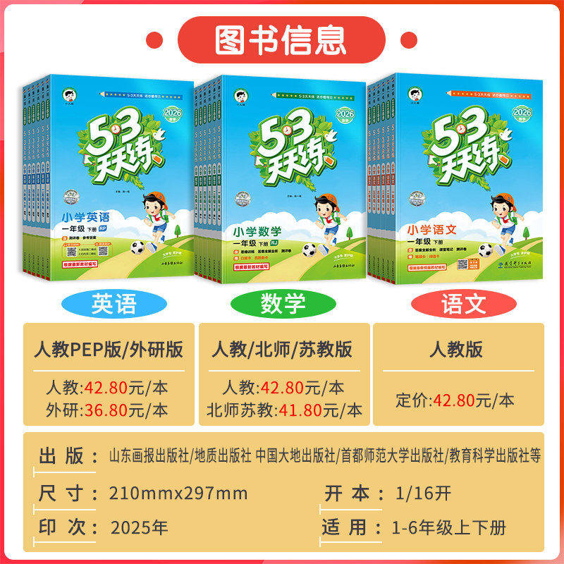天猫2026春新版53天天练一年级二年级三年级四五六年级下册上册语文数学英语人教版北师大苏教外研5+3五三5.3天天练小学课本同步训练习
