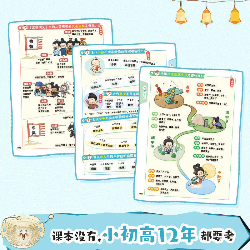 《开心2026大语文必背知识》是一套专为小学至高中学生打造的分级阅读漫画百科书,紧扣人教版教材,系统梳理12年必考语文知识点。全书以趣味漫画形式呈现,融合文学、文化、历史、百科等多元内容,让枯燥的知识变得生动易懂。涵盖古诗词、名著导读、成语典故、汉字演变、传统文化等核心考点,分级设计符合各学段认知水平,既可作为课堂补充,也适合课外拓展阅读。通过“趣读+必背”模式,帮助学生轻松掌握大语文精髓,提升综合素养与应试能力,是学生积累文化常识、夯实语文基础的得力助手。