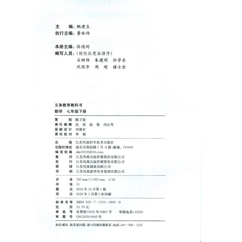 天猫苏科版 七年级下册 数学课本 义务教育教科书 7年级下册初一下 中学生数学课本/教材/学生用书 初中教材数学书苏科版教材 新华正版
