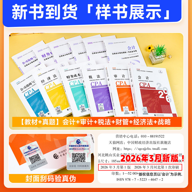 官方正版】cpa2026官方教材财经社注册会计师考试注会应试指南会计税法审计经济法财管公司战略与风险26历年真题练习题库2026年