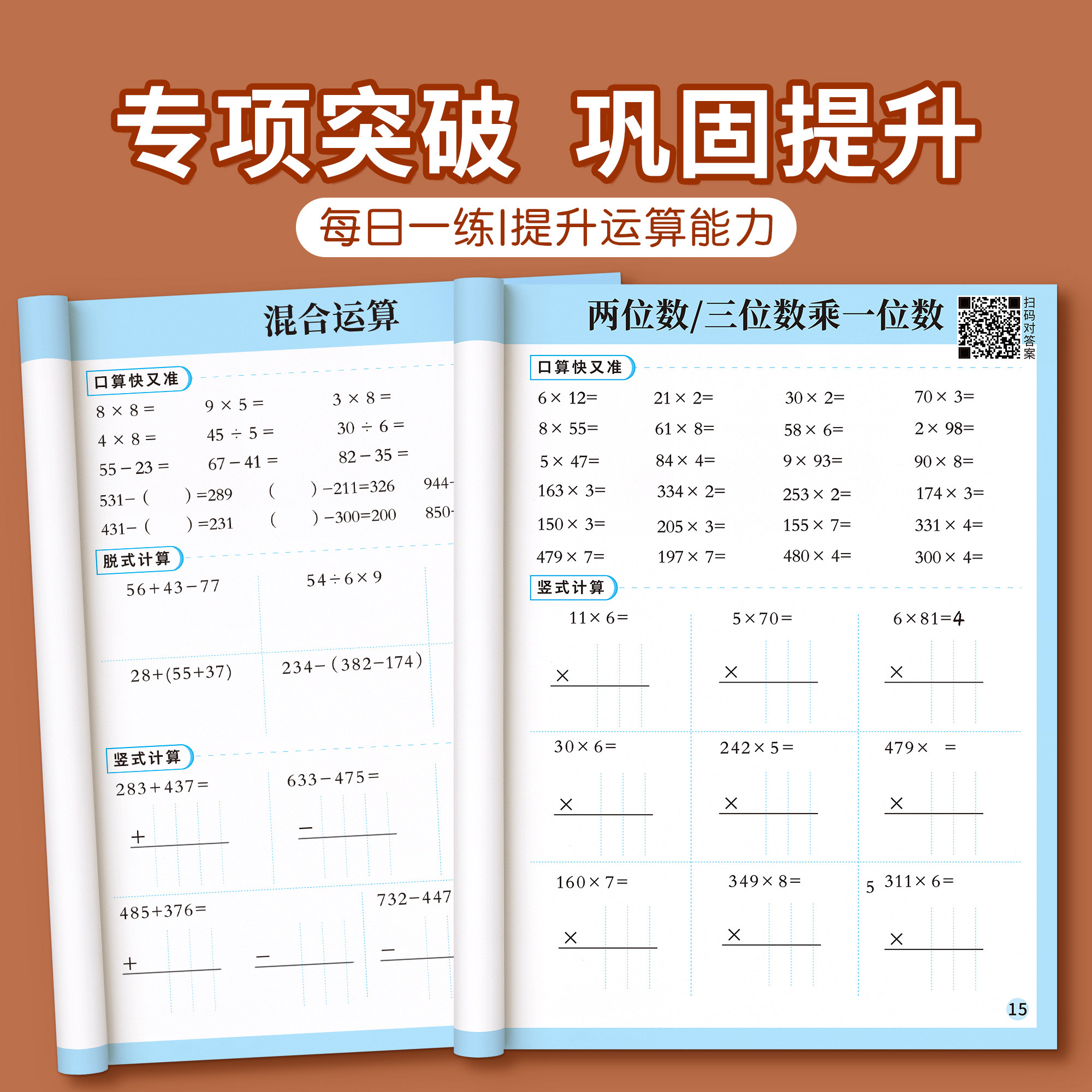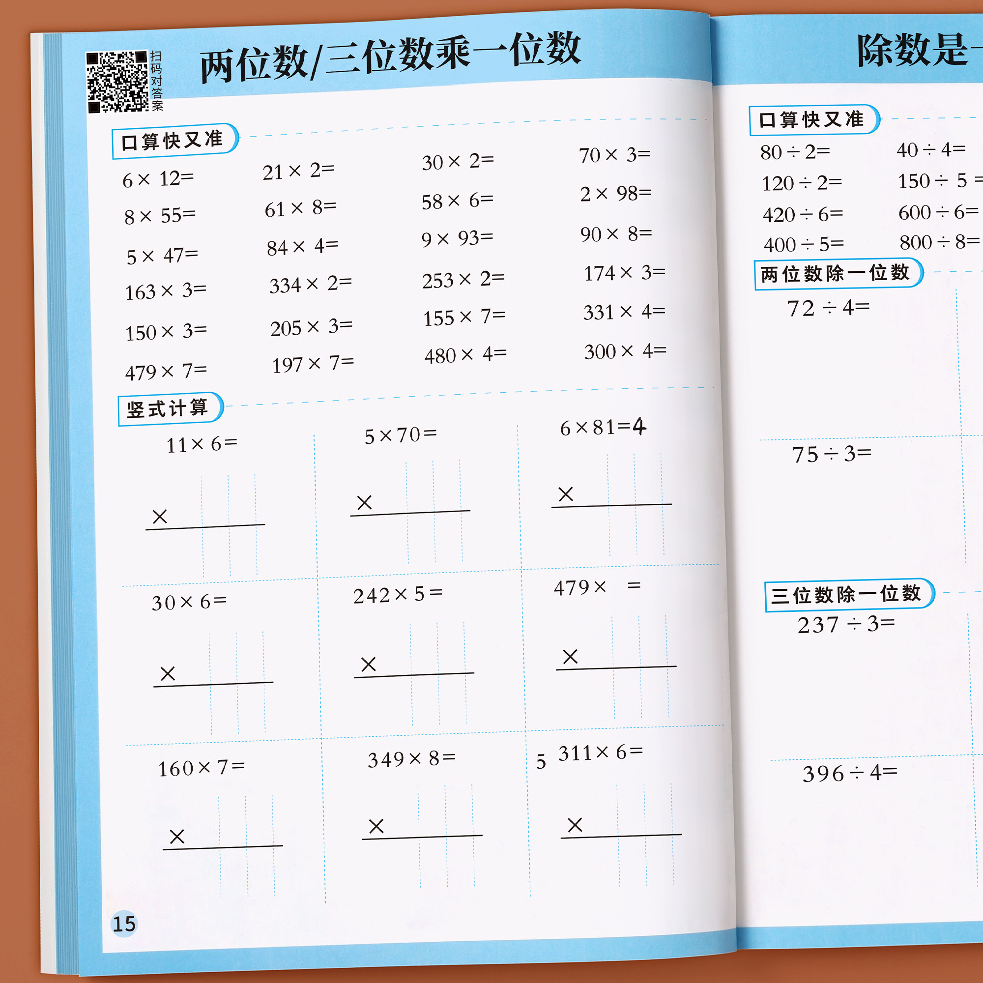 天猫三年级口算题天天练数学计算题强化训练上册下册人教版口算题卡每日一练乘除法口诀练习题每天一练脱式竖式练习计算思维同步练习册