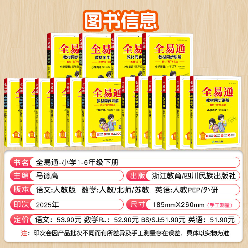 天猫2026春版小学全易通三年级四五六年级下册上册一二年级语文数学英语人教版北师大苏教外研课本同步教材解读全解讲解课堂笔记资料书