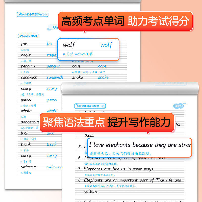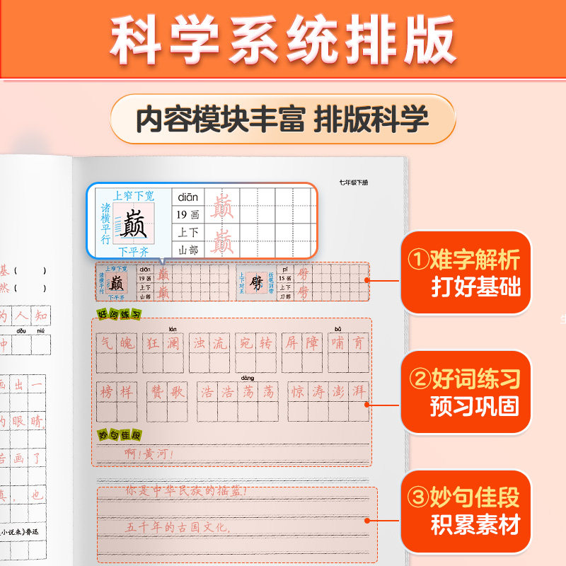 26新版墨点七年级下册语文字帖,专为初中生设计,同步人教版语文教材,涵盖七、八、九年级下册内容,精准匹配课本生字词与重点语句。字帖采用规范正楷字体,笔顺清晰,结构工整,适合初一、初二学生练字使用。同时配套衡水体英语练字帖,帮助提升英语书写美观度。内页设置钢笔描红与临写格,循序渐进强化书写技能。纸质优良,印刷清晰,便于反复练习。是初中生巩固语文基础、提升书写水平的理想辅助工具,助力学生在考试中卷面整洁、得分更高。