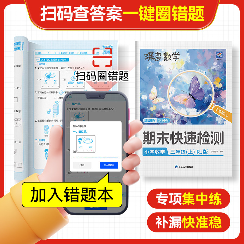 【官方正版】《蝶变期末快速检测冲刺100分试卷》专为小学一至六年级学生设计,涵盖语文、数学、英语三科,分上下册同步人教版教材。试卷紧扣新课标要求,题型丰富,难度适中,包含单元测、期中、期末模拟及专项训练,帮助学生系统复习、查漏补缺。每套试卷均配有详细答案解析,便于学生自查自纠,快速提升应试能力。精选典型题目,强化重点难点,助力学生在期末考试中取得优异成绩。正版保障,印刷清晰,是小学生期末冲刺的理想复习资料,让学习更高效,成绩更出色!