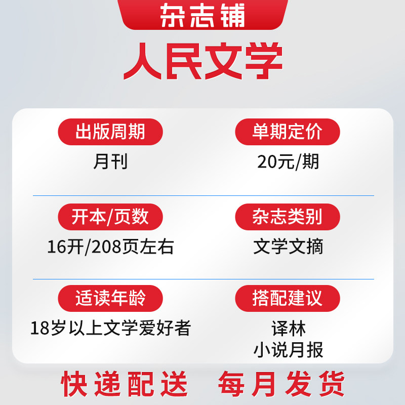 天猫人民文学杂志订阅 2026年1月起订阅杂志铺 1年共12期 励志文学 青春故事阅读 小说散文 优美篇章鉴赏 文学文摘期刊杂志图书