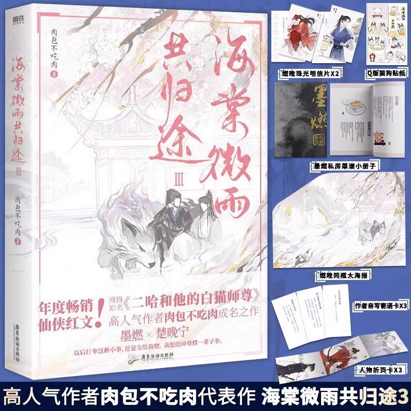 《海棠微雨共归途》全6册是肉包不吃肉(原笔名“二哈和他的白猫师尊”作者)创作的青春文学言情小说,讲述跨越误会、成长与救赎的动人故事。作品文笔细腻,情感真挚,融合古风与现代元素,深受读者喜爱。作为磨铁图书推出的畅销实体书,该系列在新华书店等渠道均有正版销售,广受好评。书中主角历经波折终得相守,“海棠微雨”意象唯美,寓意深情不渝。无论是剧情张力还是人物塑造,均体现作者深厚笔力,是近年来青春言情领域的佳作,值得细细品读。