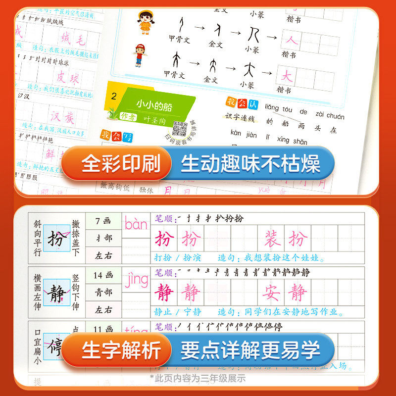 2026新版《华夏万卷小学生语文英语同步写字课》是一套专为小学一至六年级学生设计的人教版同步字帖,涵盖上下册语文生字与英语单词练习。字帖严格遵循新课标要求,内容紧贴课本,一课一练,帮助学生巩固课堂所学。采用全彩大字排版,保护视力,提升书写兴趣。正楷字体规范美观,配有描红、临写格,循序渐进提升书写能力。语文部分聚焦生字笔顺、结构与拼音,英语部分强化字母与单词拼写,实现语英双修。官方正版,品质保障,是小学生夯实书写基础、提升语文与英语综合素养的理想教辅工具。