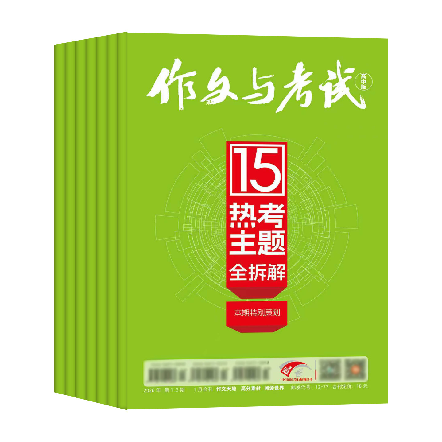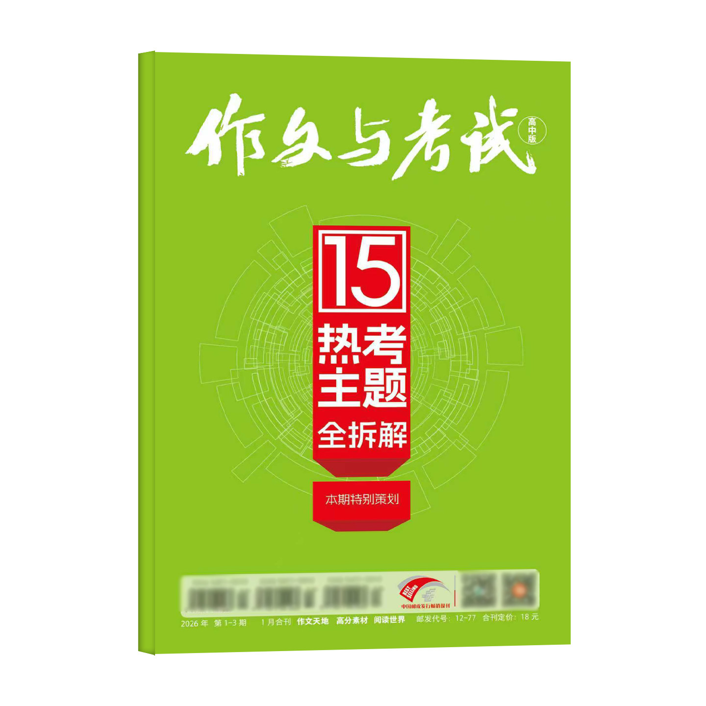 《作文与考试·高中版》2026年1月全新推出,全年/半年订阅、增刊及单月可选,灵活满足备考需求。本期精选2025年1—12月高考满分作文素材精华,汇聚“作文天地”与“高分素材·阅读世界”两大核心板块,紧扣最新命题趋势,提供权威解析与实用写作技巧。内容涵盖热点话题、经典范文、名师点评及素材积累,助力高中生提升审题立意、语言表达与逻辑思维能力。无论是冲刺高考还是日常积累,本杂志都是提升写作水平的得力助手,为考生打造高效、精准的备考资源平台。