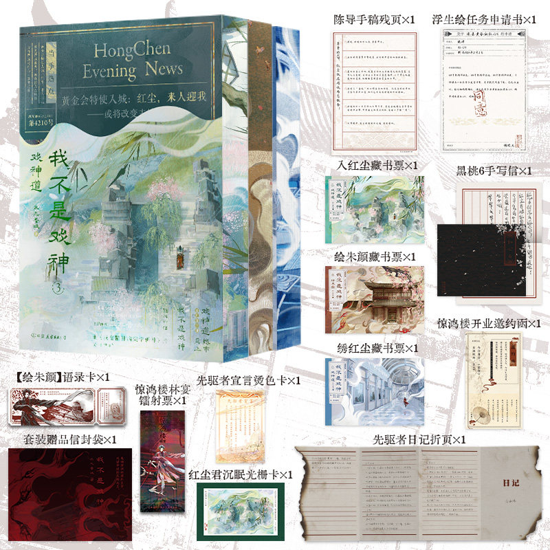 《我不是戏神》(3-5册套装)是三九音域创作的悬疑惊悚力作,2024–2025年度番茄小说口碑爆品。小说以诡谲剧情与层层反转著称,讲述主角在虚实交错的“戏台”中挣扎求生的惊险旅程。本套为独家版本,含精美刷边设计,并附作者亲签印章特典,极具收藏价值。随书更赠十余件精美周边,包括角色卡、海报、书签、解谜手册等,沉浸式体验拉满。自上线以来口碑持续发酵,读者直呼“细思极恐”“熬夜追更”,是不可错过的国产悬疑佳作。