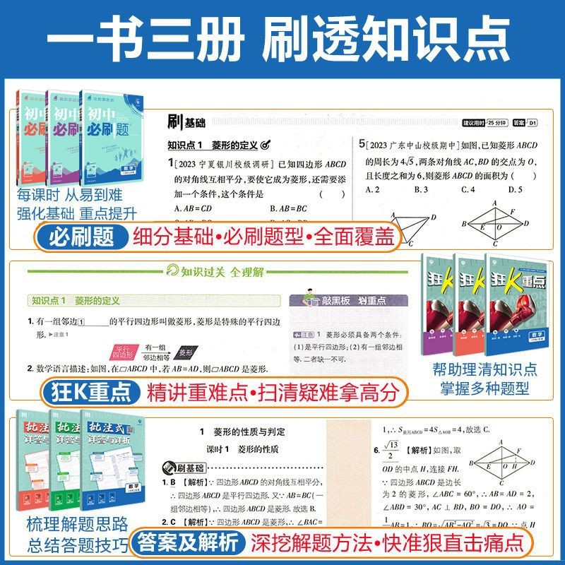 2026新版初中必刷题系列涵盖七年级至九年级全学科,包括数学、语文、英语、物理、化学、政治、历史、生物、地理等科目,适配人教版、北师大版等主流教材。练习册按年级分册(上册/下册),紧扣新课标与中考考点,题型全面,难度分层,注重基础巩固与能力提升。精选典型例题,配备详细解析,帮助学生同步课堂学习,强化专项训练,提升解题能力。适用于初一至初三学生日常练习、复习备考,是提升成绩的高效教辅资料,助力学生夯实基础、冲刺高分。