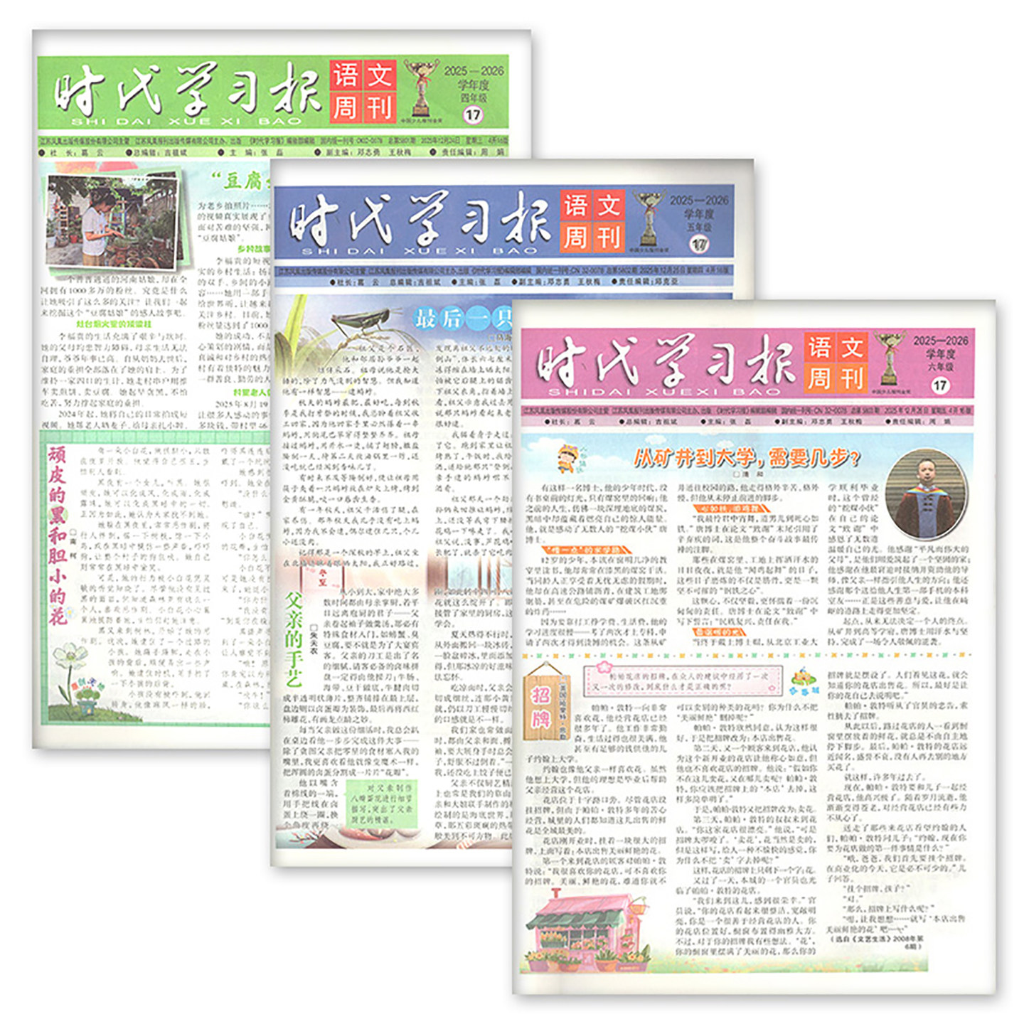 《时代学习报·语文周刊》(人教版)是专为江苏地区小学生打造的高质量语文学习报刊,覆盖小学一至六年级,紧扣新课标与人教版教材,同步课堂教学。2026年春季/秋季学期特推配套试卷,强化基础知识与阅读写作能力训练,助力学生夯实语文根基。每期内容生动有趣,融合知识性、趣味性与实用性,配有精选练习题与单元测评,帮助学生及时巩固所学。报纸编排科学,图文并茂,适合学生自主阅读与教师课堂使用。现开放2026年订阅(非2025年),可选1-6年级江苏专版,是提升语文素养的理想学习伴侣。