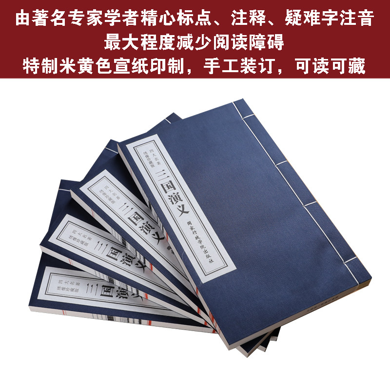 【善品堂藏书】《三国演义》(绣像珍藏版)一函四册,为罗贯中著四大名著之正版原著,采用传统宣纸线装工艺,古雅庄重,极具收藏价值。本书收录完整原文,配以详尽注释与白话译注,便于读者深入理解经典内涵。内附精美绣像插图,人物生动,再现汉末群雄逐鹿之风云气象。善品堂精选优质纸张与手工装帧,融合国学古籍之精髓与现代阅读需求,兼具艺术性与实用性。现由国家行政学院出版社现货发行,是文学爱好者、国学研习者及藏书家的理想之选,既宜品读,亦可传家,彰显中华文化深厚底蕴。