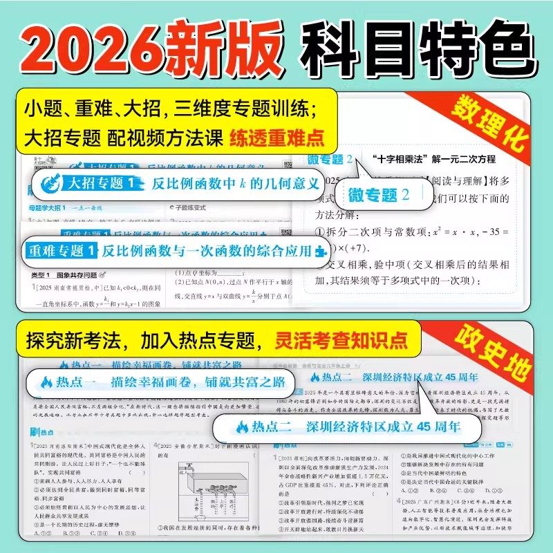 《理想树2026初中必刷题》是一套专为初中生设计的同步练习册,涵盖七至九年级上册、下册全部学科,包括语文、数学、英语、物理、化学、政治、历史、地理、生物(小四门),适配人教版、北师大版等主流教材。丛书紧扣课标与考纲,题型丰富,难度分层,注重基础巩固与能力提升。每科配备专项训练,强化重点难点,帮助学生高效掌握知识点,提升应试能力。题目设计贴近中考趋势,解析详尽,便于自学与复习。无论是日常同步练习,还是阶段性复习备考,本套丛书都是初中生夯实基础、冲刺高分的优质选择。