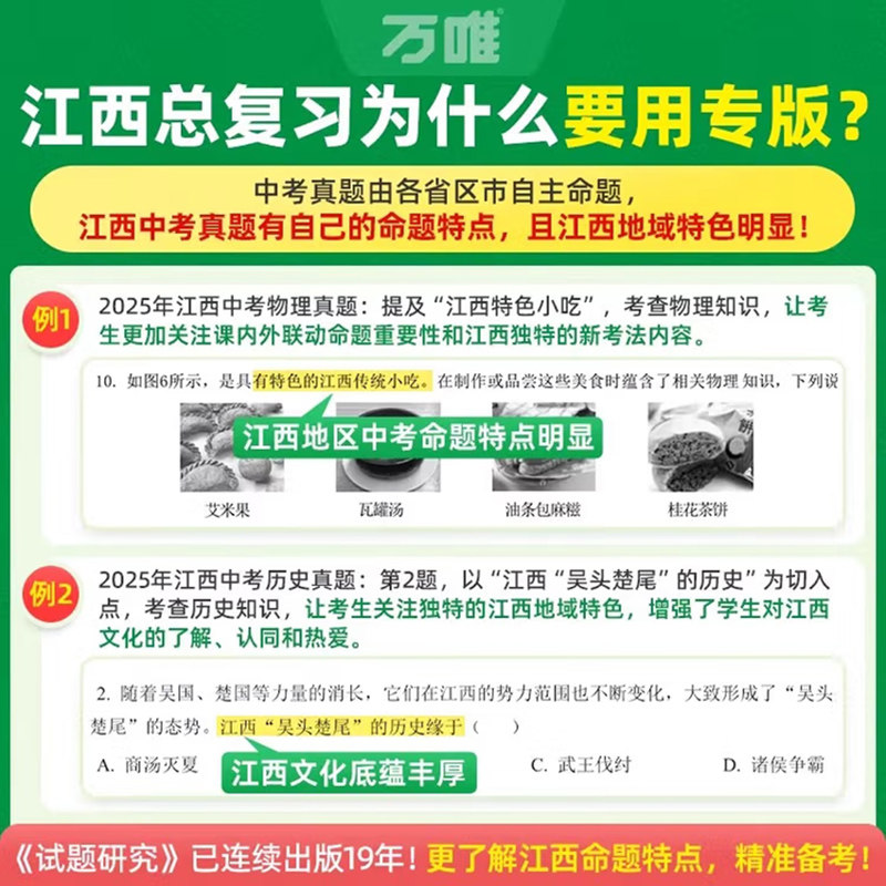 淘宝【江西专版】2026万唯试题研究语文英语数学物理化学政治历史生物地理中考复习资料万维中考试题研究速查360初三九年级中考必刷题