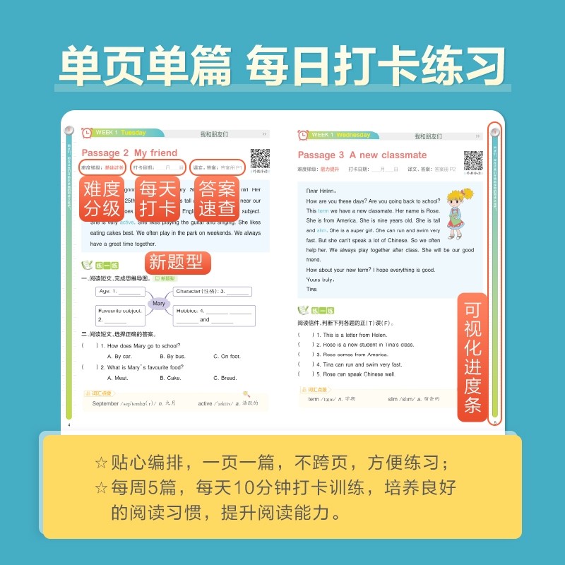《星火小学英语阅读天天练》专为1-6年级学生设计,涵盖各年级阅读理解专项训练,共100篇精选话题练习,内容贴近课标,全国通用。每篇练习配有同步音频,有效提升听力与朗读能力,实现“听、读、练”一体化学习。题型丰富,难度梯度合理,兼顾基础巩固与能力拓展,帮助学生掌握阅读技巧,积累词汇与表达。适合课后自主练习或课堂辅助使用,是提升小学生英语综合素养的优质课外读物,助力孩子在轻松氛围中爱上英语阅读,稳步提高语言能力。