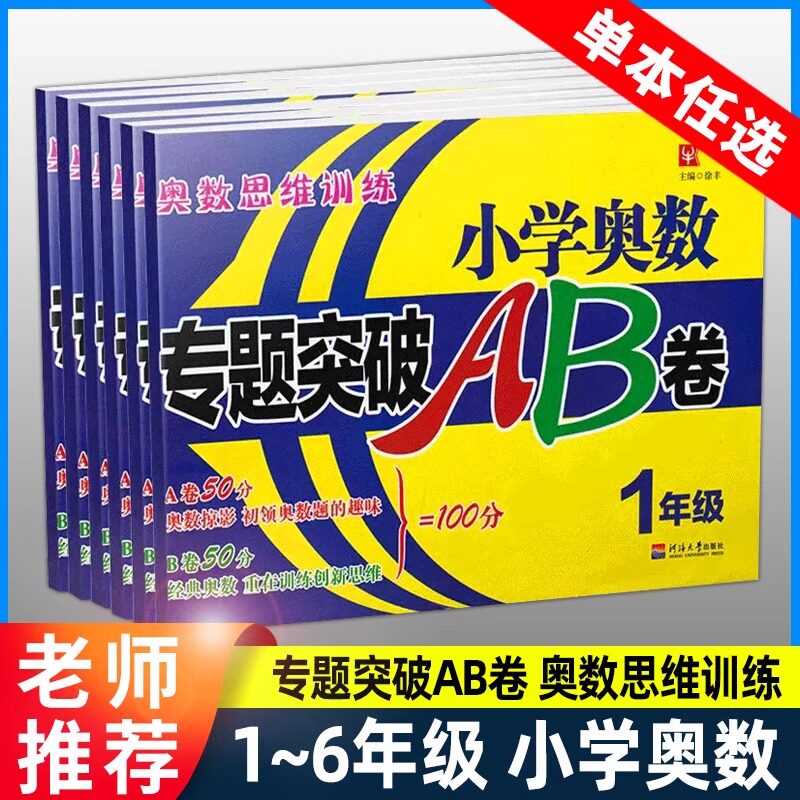 【2026新版配套新教材】小学奥数专题突破AB卷,专为1-6年级学生设计,紧扣新课标教材,系统覆盖数学思维核心知识点。A卷夯实基础,B卷拓展提升,分层训练助力学生从理解到应用全面进阶。内容涵盖计算、几何、应用题、逻辑推理等奥数重点专题,题型新颖,难度梯度合理,兼顾同步学习与竞赛培优需求。每册分上下两册,与学期教学同步,适合优等生拔高及数学爱好者强化训练。精选典型例题,详解解题思路,配套单元测试与综合测评,全面提升数学素养与应试能力,是小学生数学思维训练的理想教辅资料。