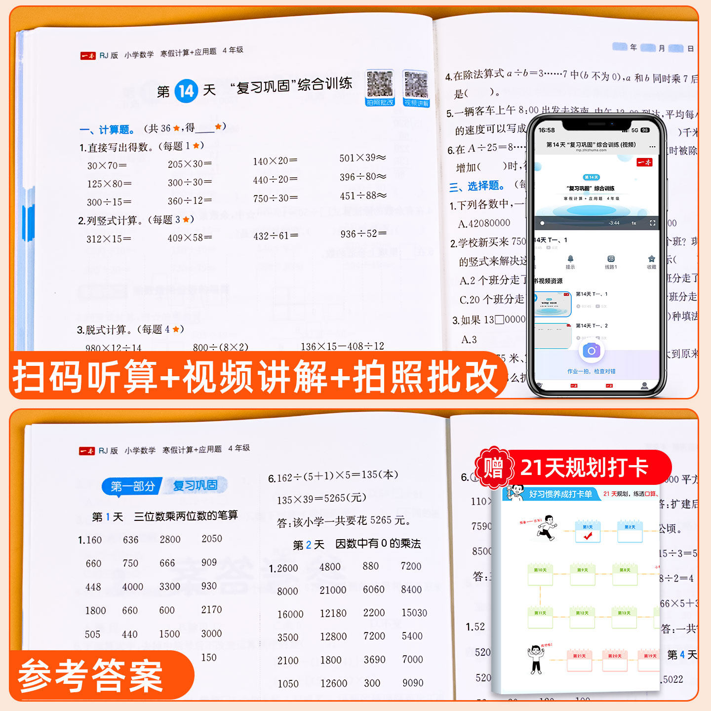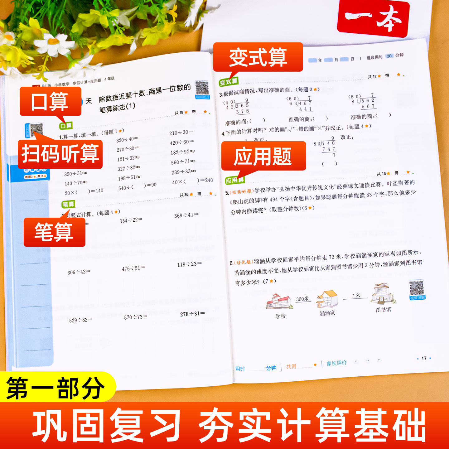 天猫四年级寒假口算人教版北师版苏教版数学计算题应用题专项强化训练口算题卡上册下册练习题计算练习口算题天天练一本寒假作业衔接