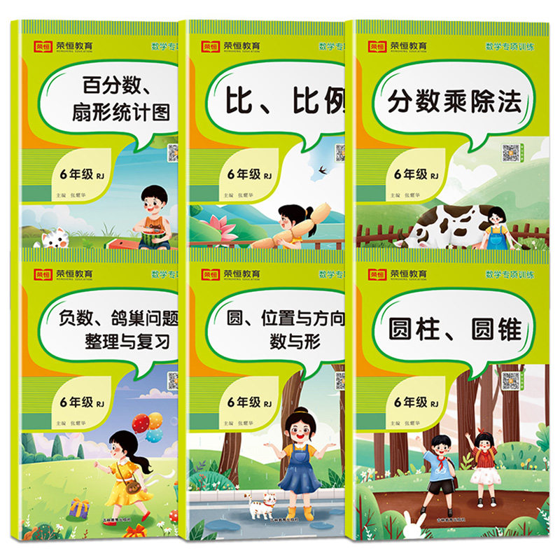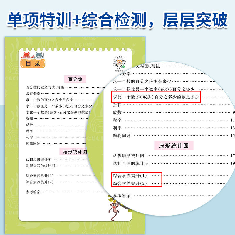 天猫数学专项训练六年级上册:比 比例+百分数 扇形统计图+分数乘除法+圆 位置与方向 6上同步人教版数学练习题同步练习册思维天天练