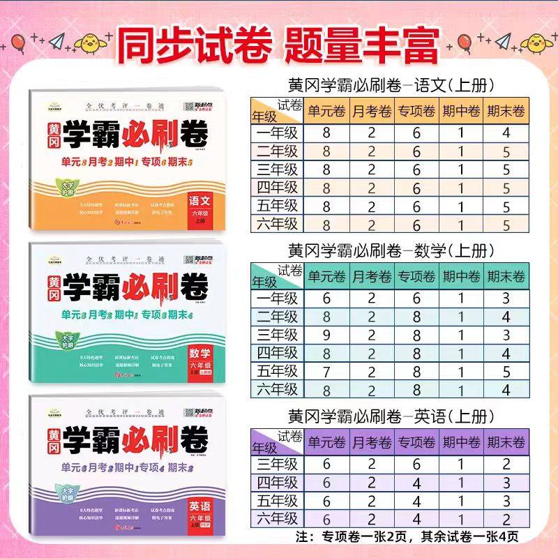 2025新版《黄冈学霸必刷卷》是一套专为小学一至六年级学生打造的全科同步测试卷,涵盖语文、数学、英语三科,分上下册,严格对标人教版教材。试卷包含课前预习、单元检测、期中期末真题及提优训练,题型全面,难度梯度合理,紧扣新课标要求。精选黄冈地区优质真题,注重基础知识巩固与思维能力拓展,帮助学生夯实基础、提升综合素养。每套试卷配有详细解析,便于学生自查自纠,家长辅导更省心。是小学生高效学习、冲刺满分的理想教辅资料,助力孩子轻松成为学习小能手。