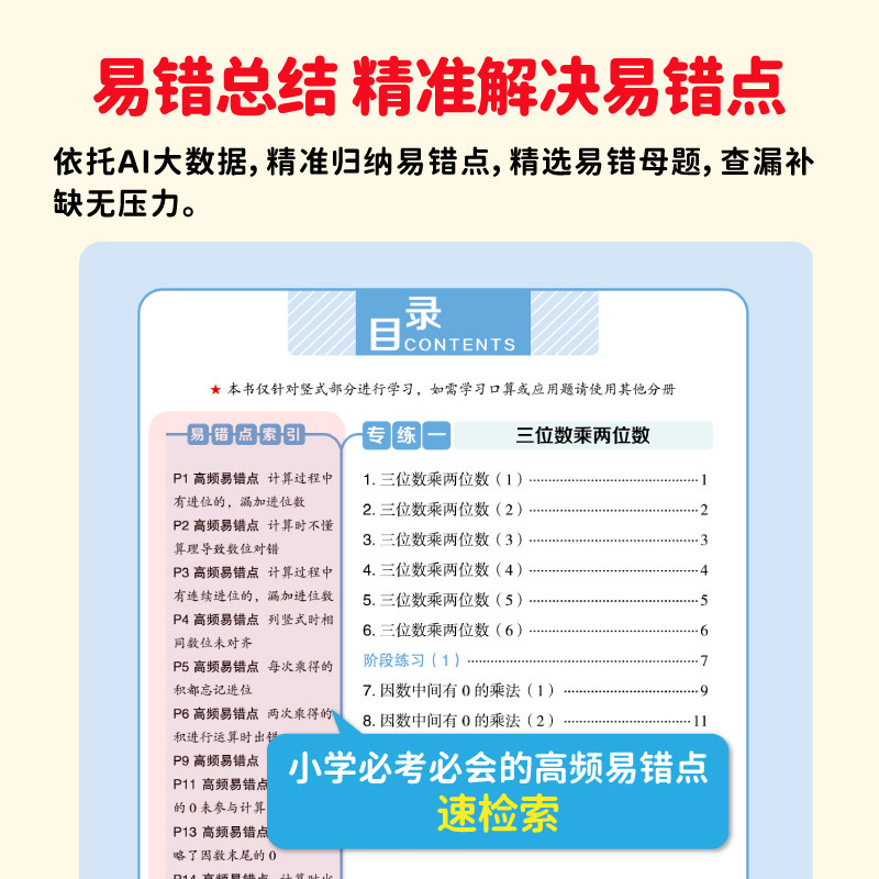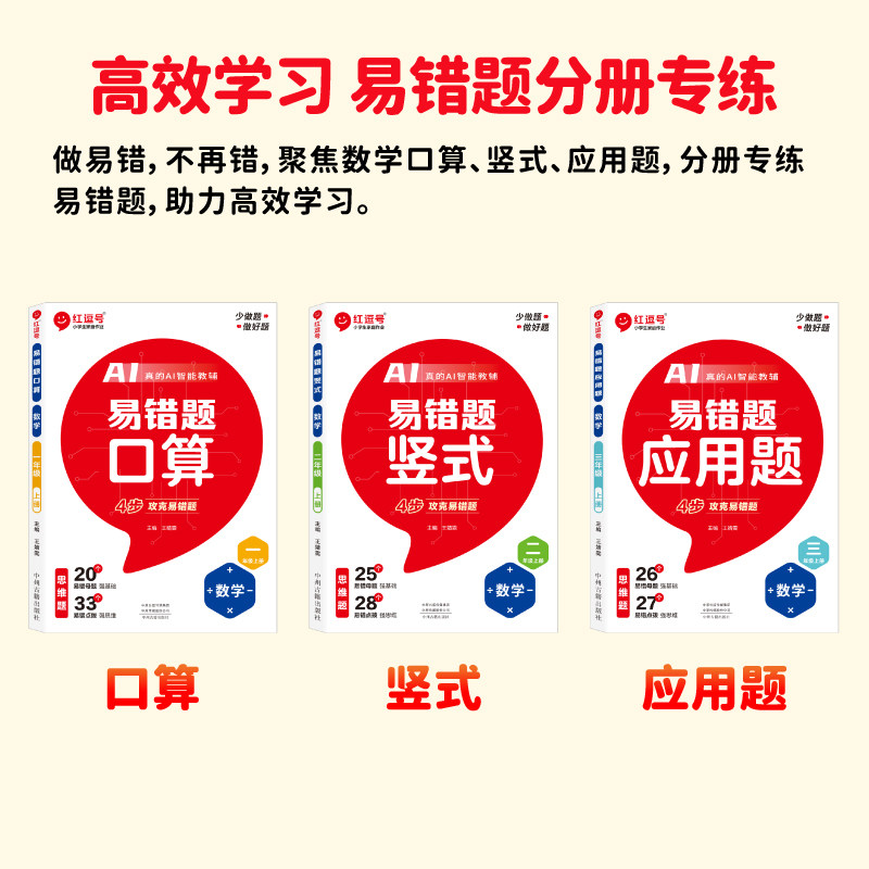 《2025秋新易错题口算竖式应用题》是一套专为小学一至六年级学生设计的数学专项训练丛书,与人教版教材同步。本书聚焦计算难点,精选易错题型,涵盖口算、竖式、脱式计算及典型应用题,注重思维训练与基础巩固。每册按单元编排,题型丰富、梯度合理,配有详细解析,帮助学生突破计算瓶颈。红逗号品牌倾力打造,紧扣新课标要求,适合每日练习使用,是提升运算能力、夯实数学基础的优质教辅材料,助力学生轻松应对课堂检测与期末考试。