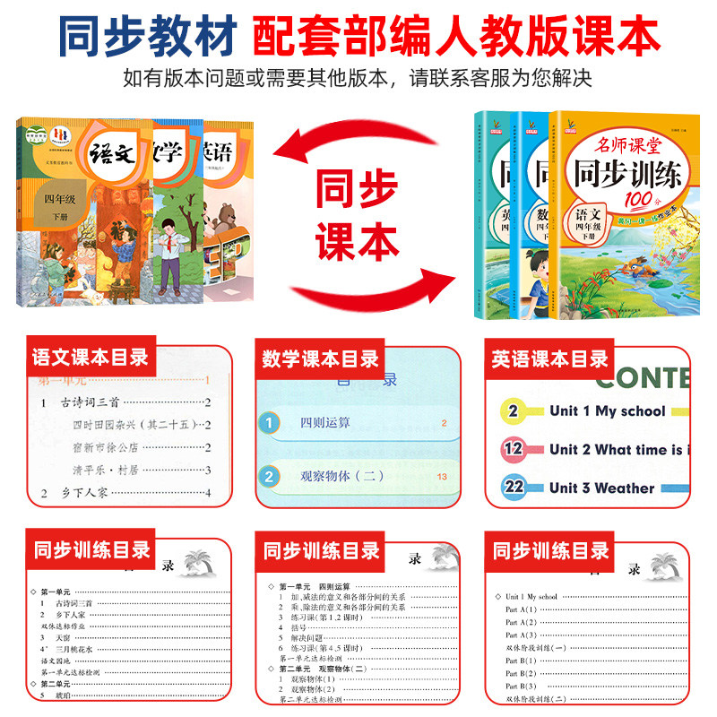 天猫四年级下册同步练习册语文数学英语书人教版北师大版天天练同步训练全套书辅导资料名师课堂语数英一课一练作业本练习题4下课课练