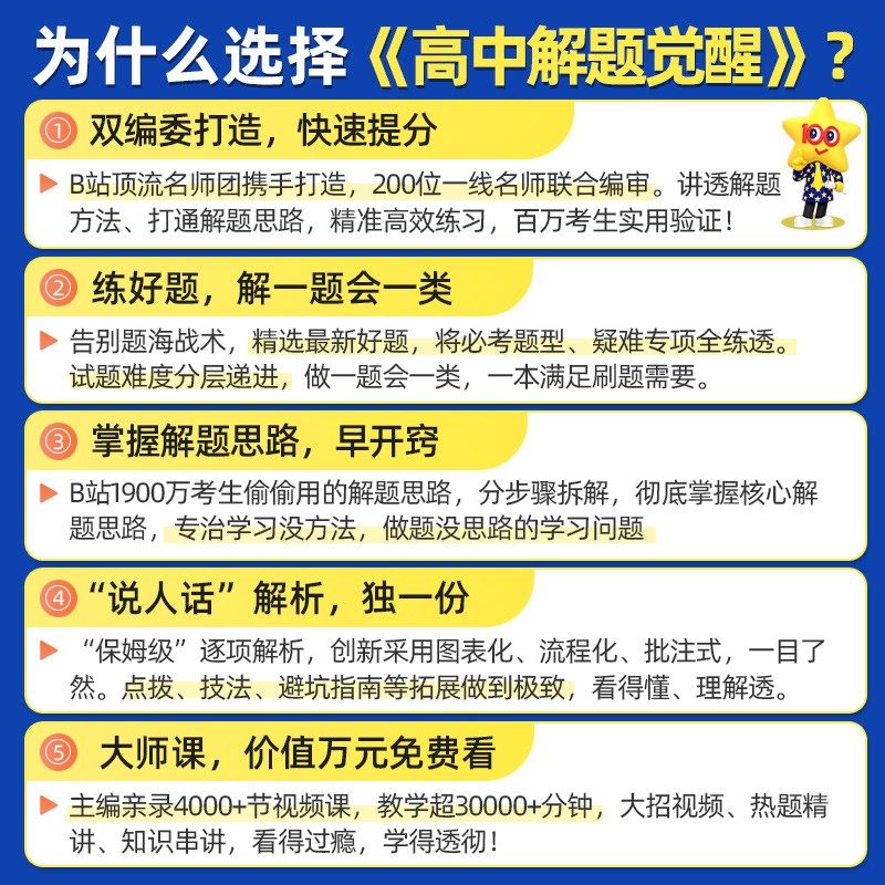 2026天星高中《解题觉醒》系列教辅,专为高一、高二学生打造,由资深教师杨佳奇主编,紧扣新课标与高考趋势。涵盖语文、数学、英语、物理、化学、生物、地理、历史等全学科,同步教材选择性必修1-3册内容,分上册、下册及第二册,结构清晰,重点突出。精选典型例题,分层训练,强化核心考点与解题技巧,搭配“必刷题”模块,助力学生夯实基础、提升思维。题目设计贴近高考命题方向,解析详尽,注重方法归纳,是高中生高效复习、突破瓶颈的优质辅助资料,广受师生好评。