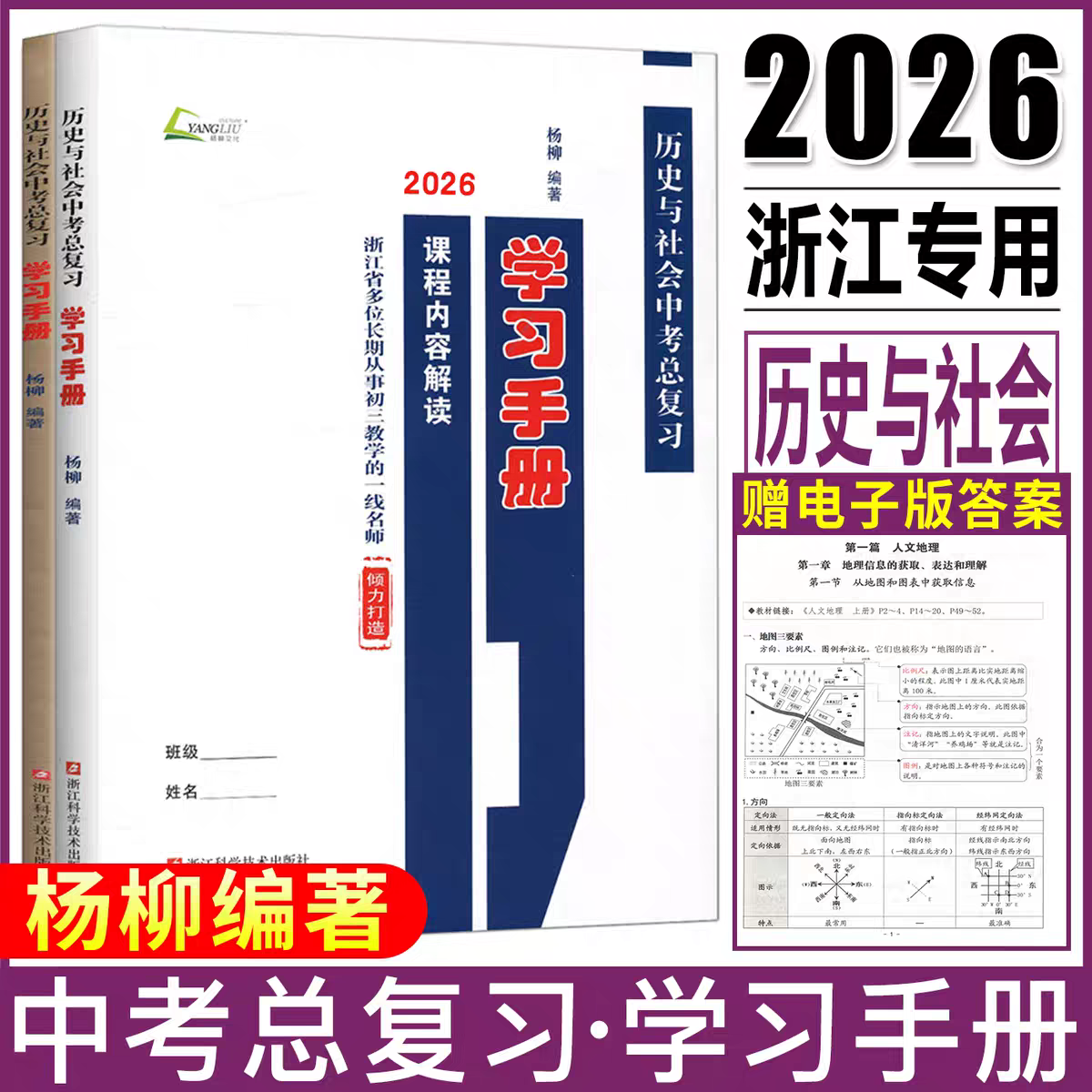 《浙江专版2026杨柳中考总复习学习手册·历史与社会 道德与法治》全6册,专为浙江中考考生精心编写。丛书涵盖人文地理、历史、道德与法治等核心内容,系统梳理中考必背知识点,结构清晰,重点突出。配套精选练习题,强化知识运用能力,帮助学生巩固基础、提升解题技巧。同时附赠《中考热点整理手册》及《时事政治》专题,紧扣时代脉搏,整合最新社会热点与政策动态,助力考生把握命题方向。全书紧扣浙江中考考纲,讲练结合,是初三学生高效复习、冲刺高分的权威辅导资料。