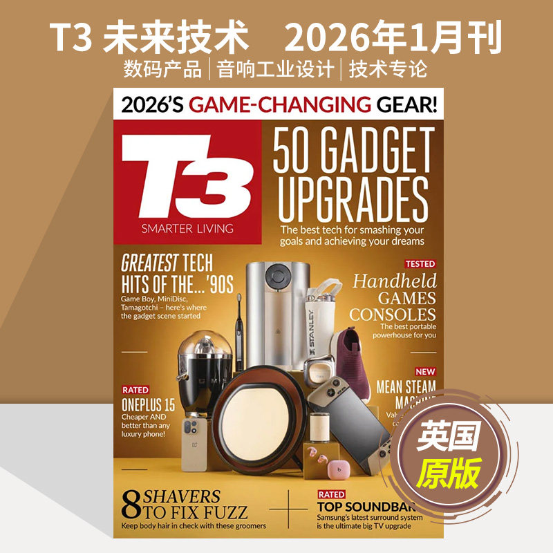 《T3》是英国知名科技与设计类英文外刊,聚焦全球前沿科技与未来生活方式。2025/26年度订阅包含12期精彩内容,涵盖数码产品、智能音响、工业设计及人工智能等创新领域。杂志以时尚视觉风格与深度评测著称,为读者呈现最新科技趋势与高端消费电子产品。无论是智能手机、可穿戴设备,还是未来家居与可持续设计,《T3》均以专业视角提供权威洞察。适合科技爱好者、设计师及追求品质生活的读者。订阅即可享受原版英文阅读体验,拓展国际视野,紧跟全球科技潮流。单期或全年订阅灵活选择,是了解未来技术的优质窗口。