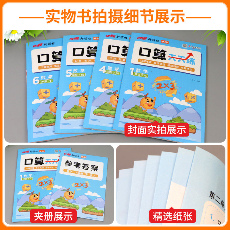 《2026优翼甘橙口算天天练》是一套专为小学一至六年级学生设计的数学专项训练丛书,涵盖上下册内容,紧扣教材同步练习。本书聚焦100以内加减法、脱式计算、竖式运算等核心知识点,每日一练,循序渐进,强化口算能力与数学思维。题型丰富、难度适中,注重基础巩固与能力提升相结合,帮助学生夯实计算基本功,提高解题速度与准确率。编排科学,题量合理,适合课堂练习、课后巩固及家庭辅导使用,是提升小学生数学运算能力的优质同步练习册。