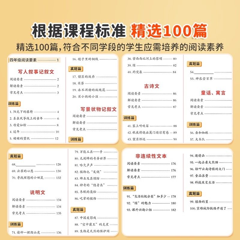 【官方旗舰】斗半匠四年级阅读理解专项训练书(上册+下册)共100篇,专为2026年适用的小学四年级学生打造,紧扣人教版语文教材,同步课堂进度。本书精选经典篇目与真题素材,涵盖写人、记事、状物、说明等多种文体,每篇配有精练题目与详细解析,帮助学生掌握阅读技巧,提升理解能力。每日一练设计科学合理,循序渐进,巩固课内知识的同时拓展课外积累。搭配小学英语同步练习题,实现语英双科高效提升。题型贴近考试,注重实战训练,是孩子夯实基础、提升成绩的理想教辅材料,助力四年级学子轻松应对学习与考试挑战。