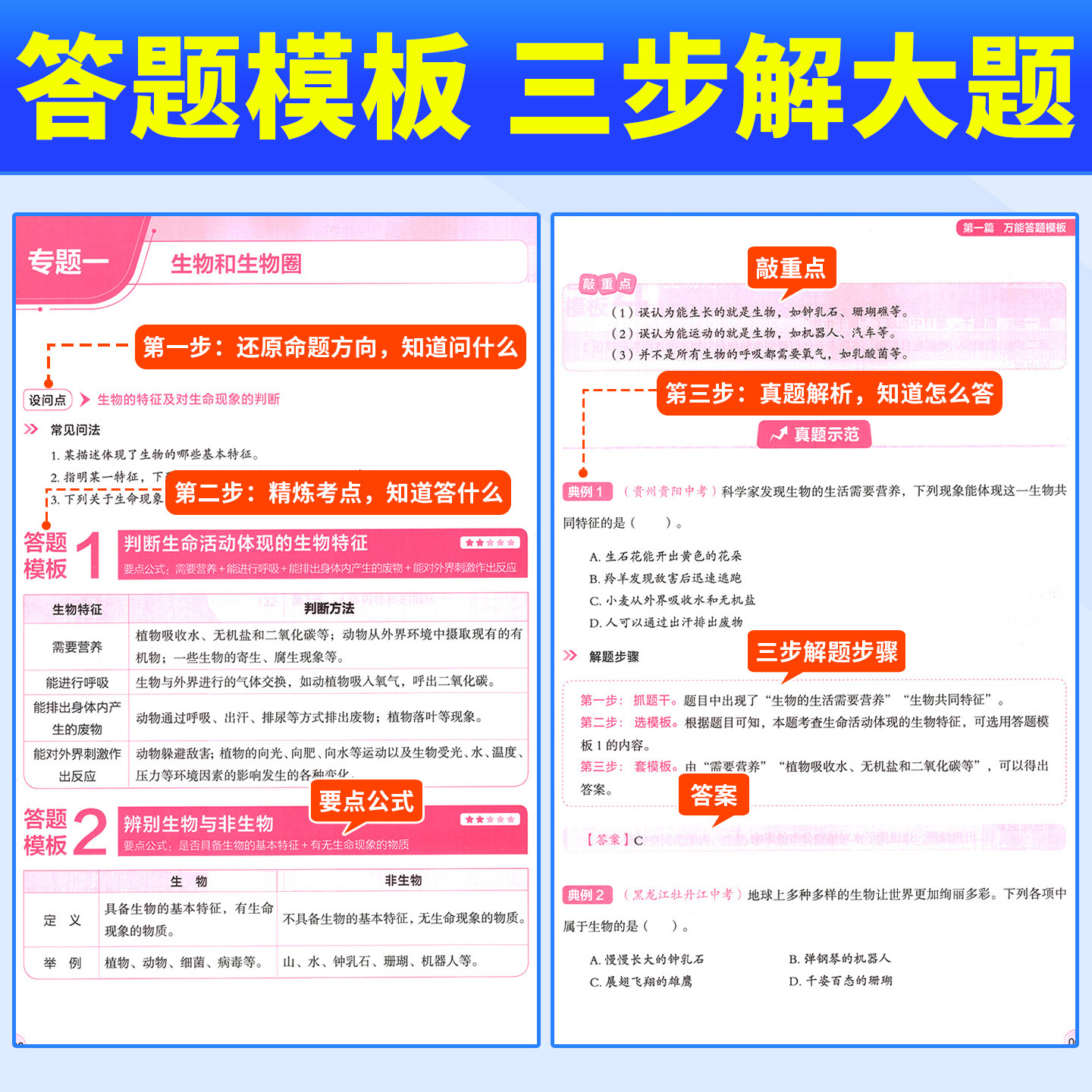 天猫2026秒记初中小四门答题模板口诀秒背道法政治历史地理生物语文数学英语物化考点速记手册考点默写初 二一三一本通必刷题小豆同学