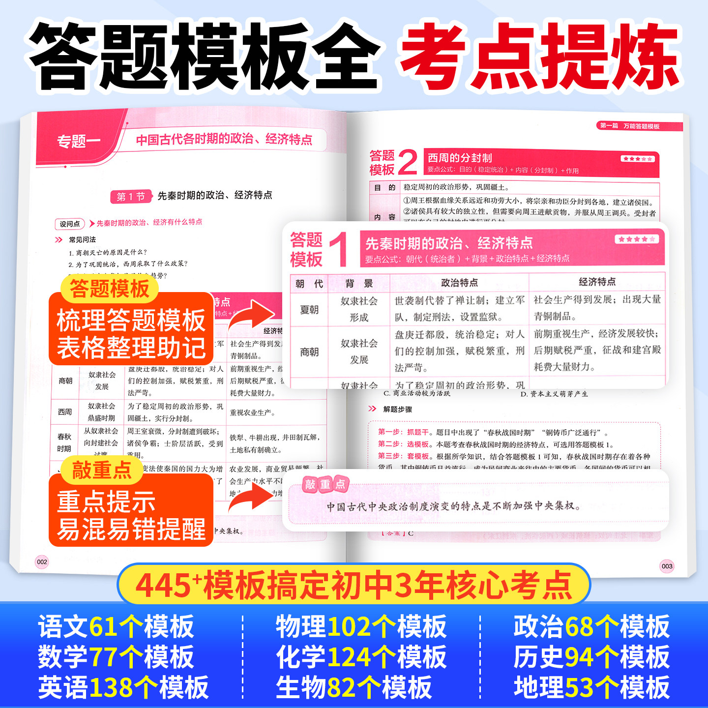 【易蓓】初中历史道法答题模板通用版答题技巧小四门基础知识大盘点汇总历史道德与法治考点速记手册大全中考复习资料教辅书