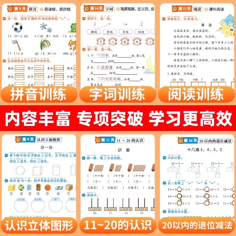 天2026新版 一年级寒假衔接人教版语文数学全套练习册1年级上册下册复习预习寒假作业一本通专项训练部编版小学生快乐寒假生活练习题